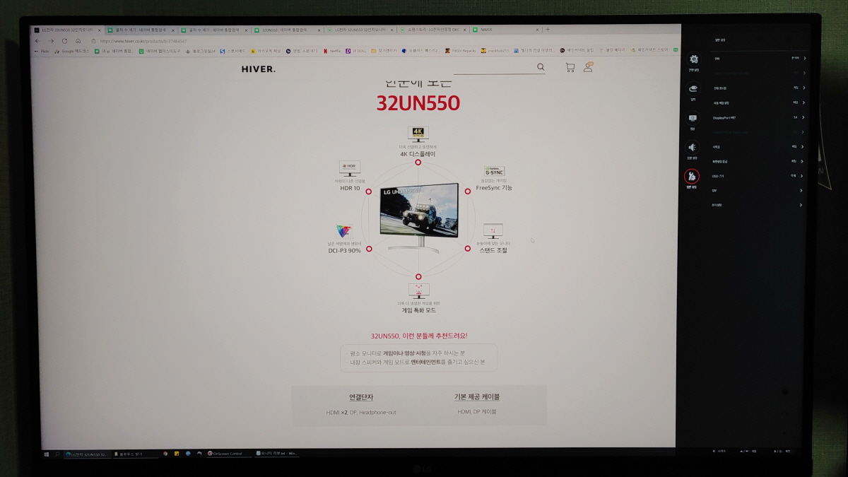 기존 모니터에 비해 32인치 대화면에 4K 해상도와 HDR 화질을 즐기고싶어서 구입했는데 아쉬운 점도 있지만 전체적으로 만족스러워요. 구형 그래픽카드라서 넷플릭스에서 4K와 HDR 영상으로 시청할 수 없는 게 안타깝지만 일반 4K 동영상 파일과 4K 유튜브 스트리밍 영상 재생은 문제없어서 다행이네요.